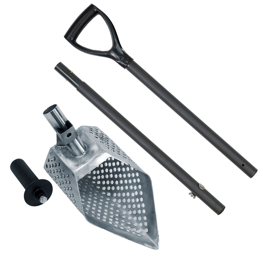 Discover treasures with the Dune Scoops Anaconda 11.5 x 6" Stainless Metal Detector Sand Scoop. Crafted with precision and durability, it features 8mm round-shaped holes for capturing ancient coins and fine jewelry. With two mounting options and a strengthened nose for efficient digging, this stainless steel scoop excels in any ground condition.