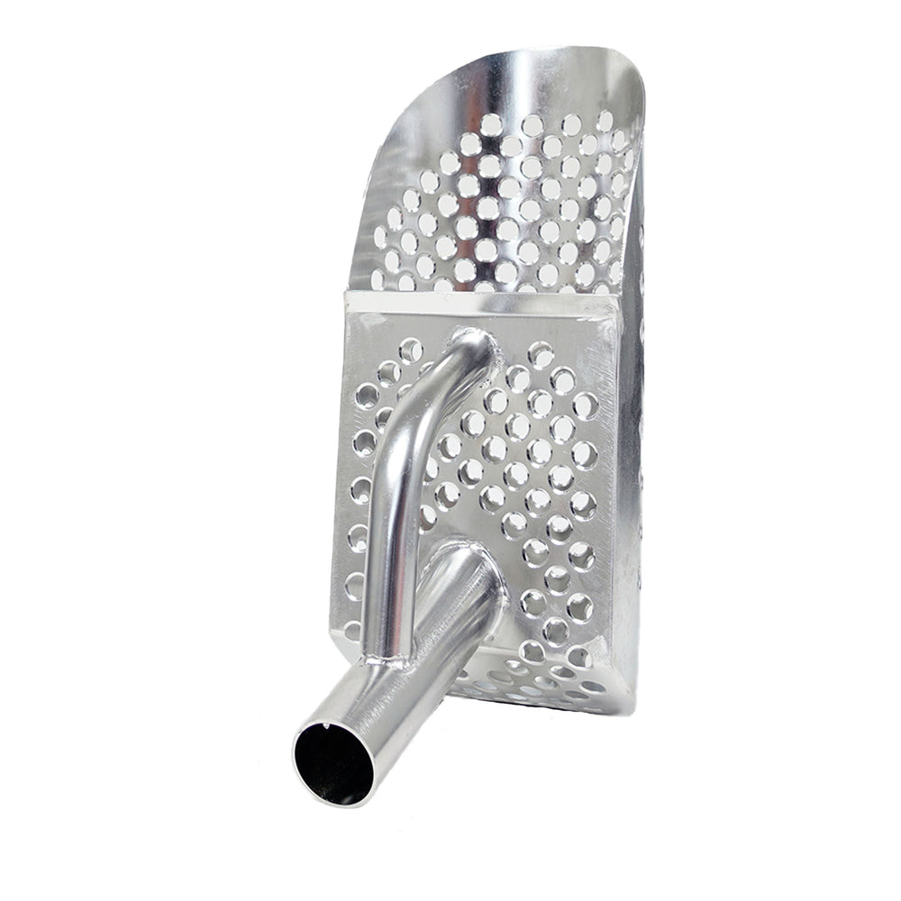 Great for the beach. If you've ever tried a conventional hand digger in the sand, well it's very slow to dig your target. The sand just keeps going back into the hole as you dig. This high-quality stainless steel sand scoop allows you to recover targets faster. It's round holes that will not allow modern coins, tokens, or most rings to pass through while allowing the sand to quickly drop back to the beach. With this beach accessory, you can spend less time digging and more time enjoying your hobby. Feel the excitement of making quick and precise finds as you swiftly scoop up your treasure!
