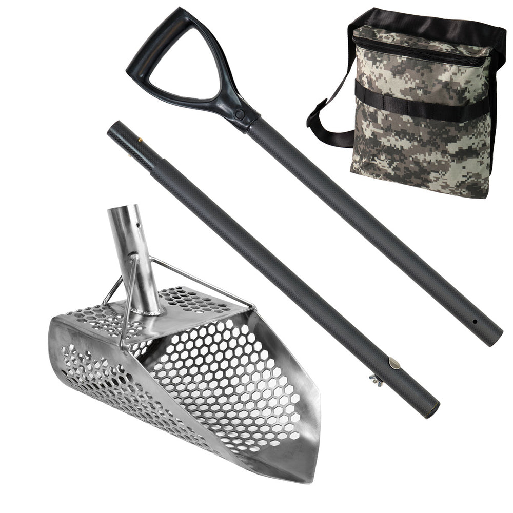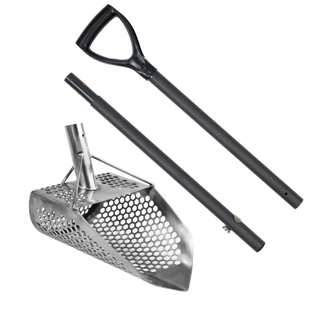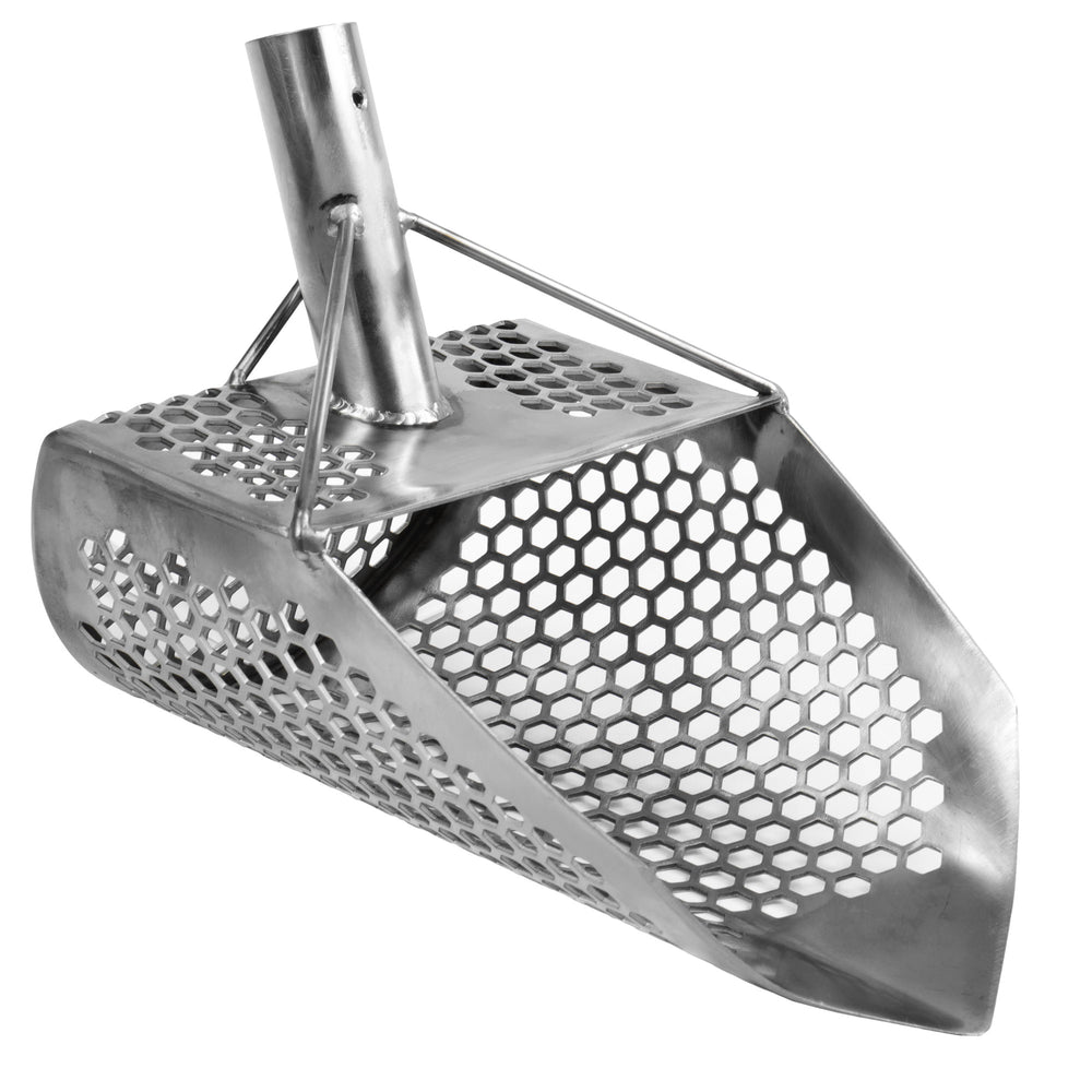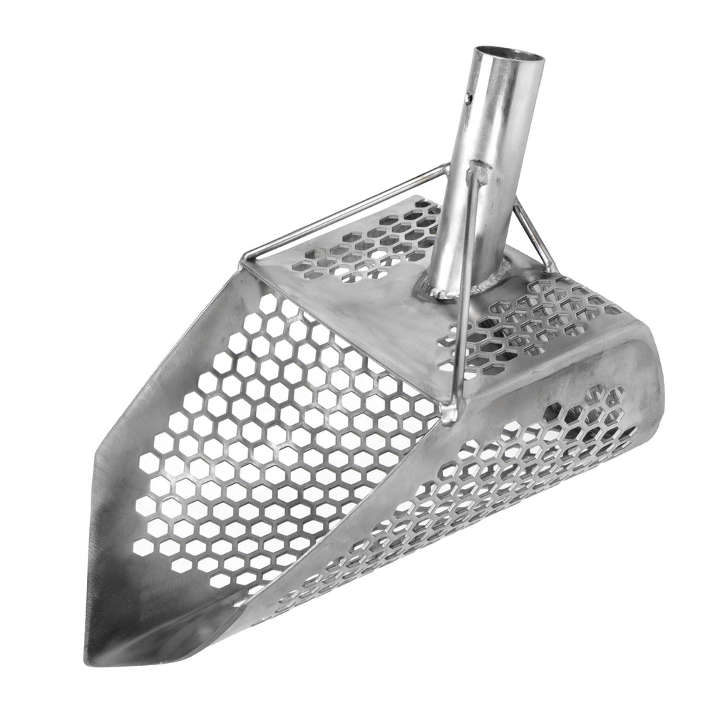 Unleash the power of our Orca metal detector sand scoop, meticulously designed with hexagon-shaped holes (10mm) and a pointed tip, ensuring efficient sifting and precision in capturing even the smallest treasures.